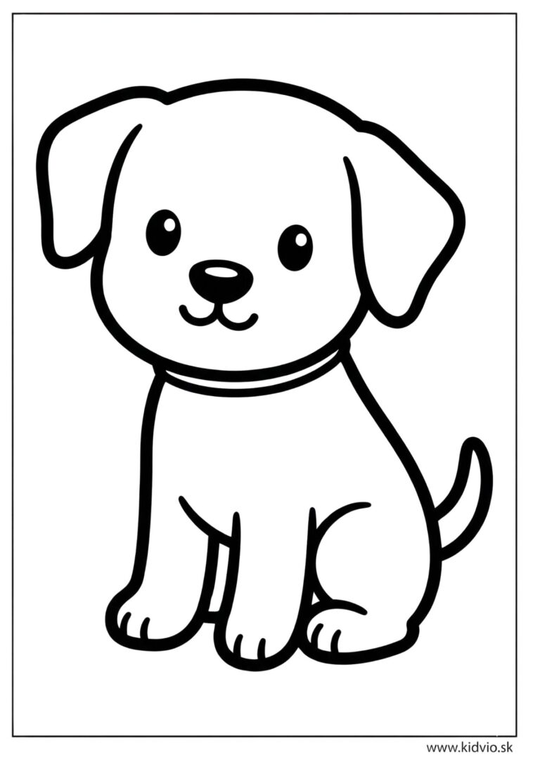 …Stiahnite si jednoduchú omaľovánku roztomilého šteniatka s hrubými obrysmi. Ideálna prvá omaľovánka pre deti od 2 rokov na tréning jemnej motoriky.